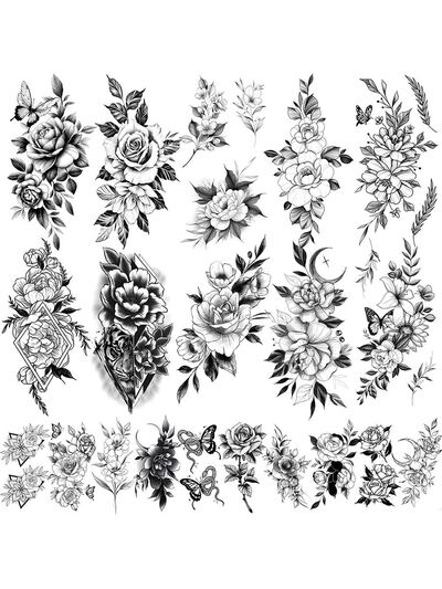 20pcs Temporary Tattoo Stickers, Sexy Floral Rose Design In Big And Small Size, Suitable For Women, Girls, Adults; Body Art, Fake Arm Tattoo Sticker, Waterproof Black Butterfly Flower, Tiger Pattern Tattoo-47%