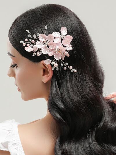 1pc Ladies' Gold-Tone Thread & Pink Flower & Rhinestone Decor Hair Clip For Daily Use Elegant Boho Valentine's Day Valentines,Wedding Hair Accessories-14%