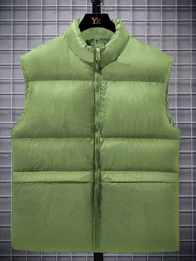 Loose Fit Men Plus Size Solid Zip Up Vest Coat-60%