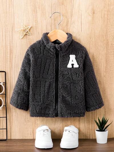 Baby Boy Letter Patched Zip Up Teddy Coat-60%
