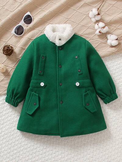 Baby Boy Letter Patched Detail Flap Pocket Teddy Coat