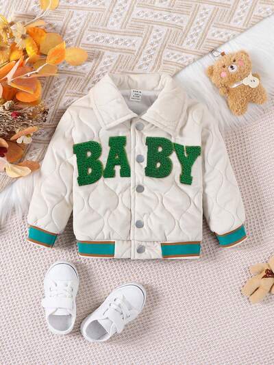 Baby Boy Letter Patched Striped Trim Quilted Coat-60%