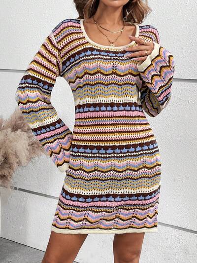 Hollow Out Striped Knitted Sweater Dress-60%