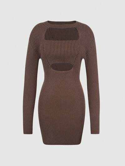 Women'S Slim Fit Knit Drop Shoulder Sweater Dress With Hollow Out Front And Ribbed Detail Fall Cloth For Women-60%