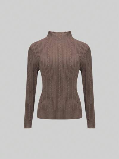 Mock Neck Cable Knit Pullover Fall Winter Sweater-60%
