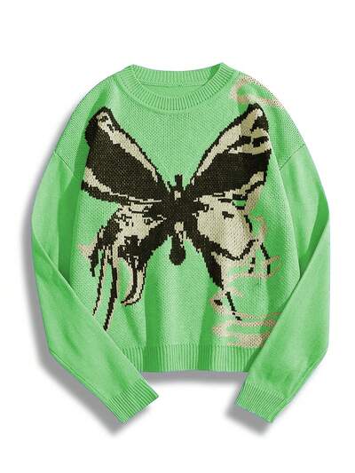 Butterfly Pattern Drop Shoulder Knit Pullover Fall Winter Sweater-60%