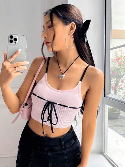 Knot Front Crop Cami Knit Top-35%