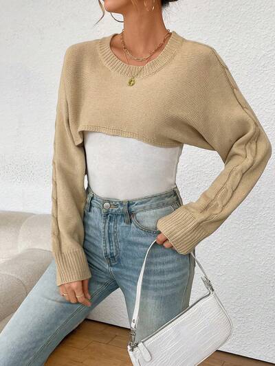 Women's Cropped Batwing Long Sleeve Knit Pullover Fall Winter Sweater-65%