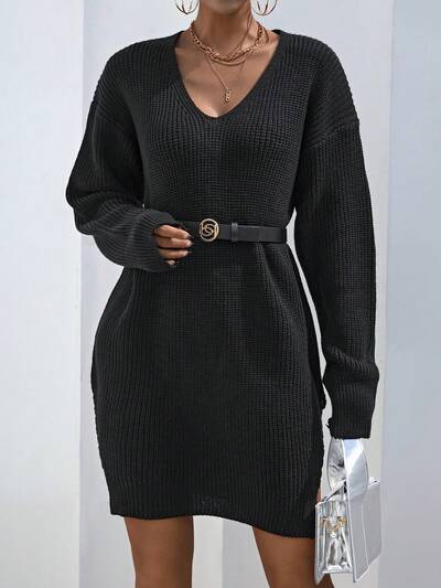Solid Color Split Hem Sweater Dress Winter Casual-60%