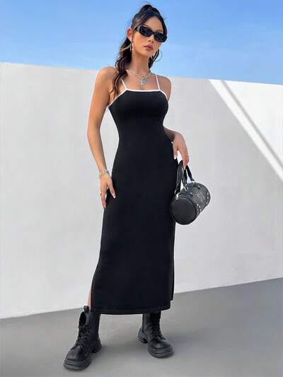 Ladies' Sports Style Knitted Cami Dress With Contrast Trim-60%
