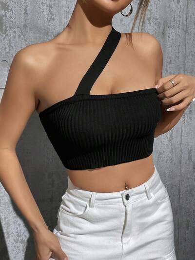 Women'S Halter Neck Hollow Out Cropped Knit Top-60%