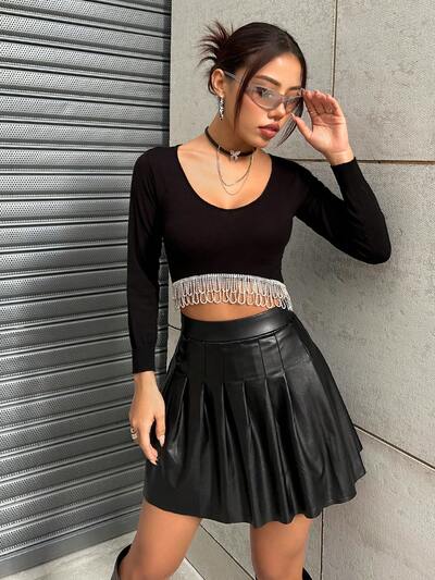 Women's Casual Round Neck Rhinestone & Tassel Design Slim Fit Knit Pullover Fall Winter Sweater-31%