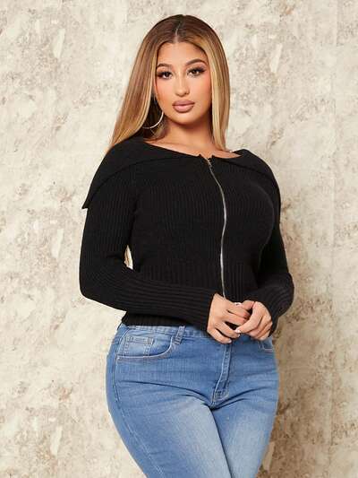 Women's Solid Color Zipper Front Large Lapel Cardigan-60%