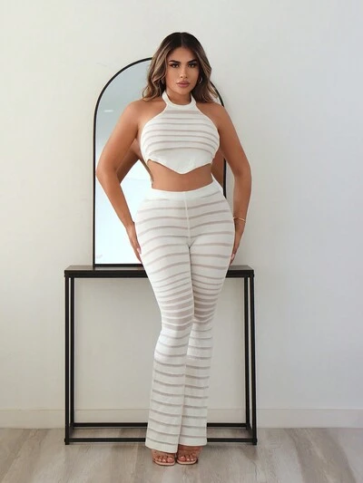 New Years Women Valentines Sexy Club White Flare Pants Winter-65%