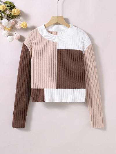 Teen Girl Color Block Ribbed Knit Sweater-60%