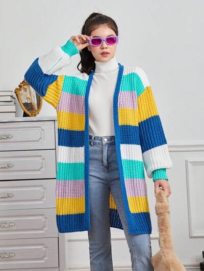 Teen Girl Colorblock Drop Shoulder Cardigan-65%