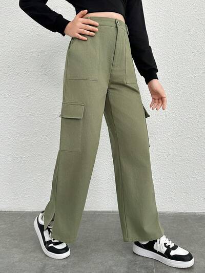Teen Girl Flap Pocket Side Split Hem Cargo Pants