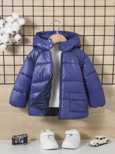 Baby Boy 1pc Flap Pocket Raglan Sleeve Hooded Padded Coat-60%