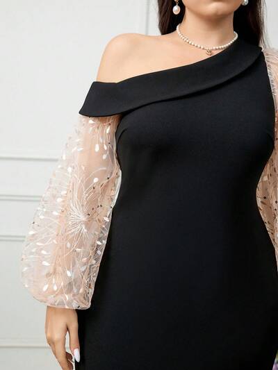 Plus Size Women's Summer Solid Color Shawl Collar Elegant Midi Dress With 3/4 Sleeves, Wedding Guest Dress