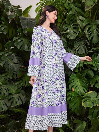 Ladies' Purple Arabic Printed Dress-44%