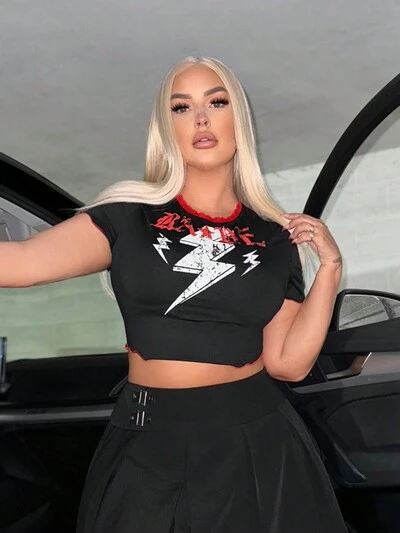 Summer Plus Size Women's Y2K Punk Style Open Shoulder T-Shirt With Wing And Floral Print-26%