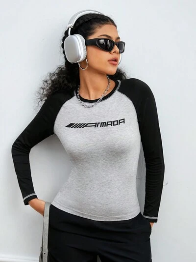 Women's Letter Print Raglan Sleeve Sport T-Shirt