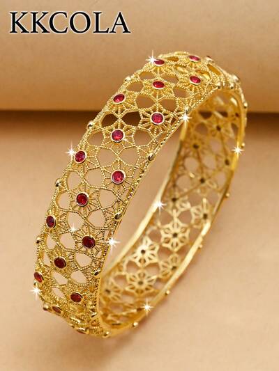 KKCOLA 1pc Fashionable Exaggerated Hollow Out Flower & Cubic Zirconia Buckle Bangle Valentines