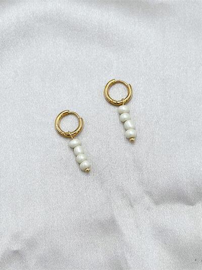 1pair Women's Long Water Drop Shape White Faux Pearl Drop Earrings Elegant Jewelry AccessoriesRhinestone Decor Flower Drop Earrings Valentines