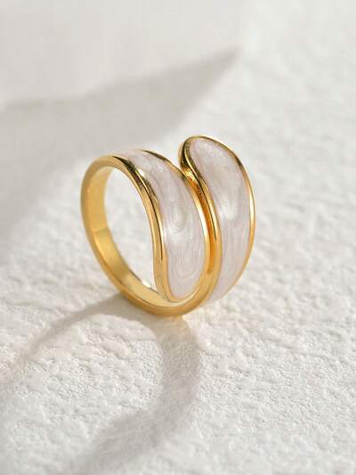 1pc Stainless Steel Oil Drop Leaf Shaped Women's Wrap Ring, Minimalist Style1pc Stainless Steel Dripping Oil Leaf Design Women's Cuff Ring Simple Style