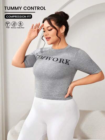Plus Size Letter Printed Sports T-Shirt-51%