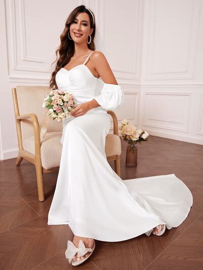 Solid Color Off-Shoulder Mermaid Tail Wedding Dress With Train