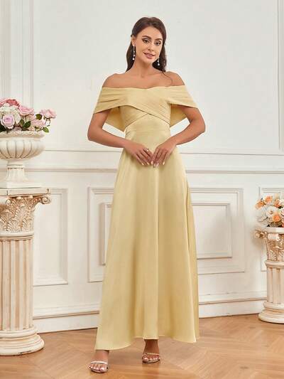 Solid Color Off Shoulder Bridesmaid Dress