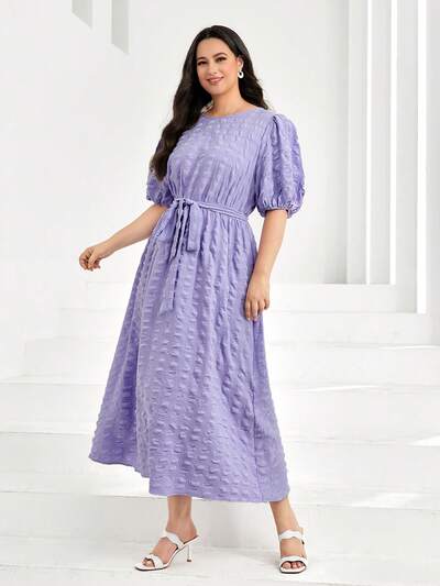 Plus Lantern Sleeve Wrap Knot Side Dress Long Evening Dresses-65%