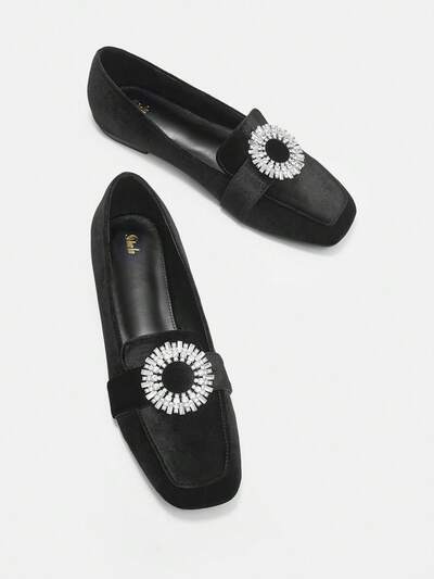 Black Korean Velvet Silver Rhinestone Decor Comfortable Daily Commute Flat Shoes-60%