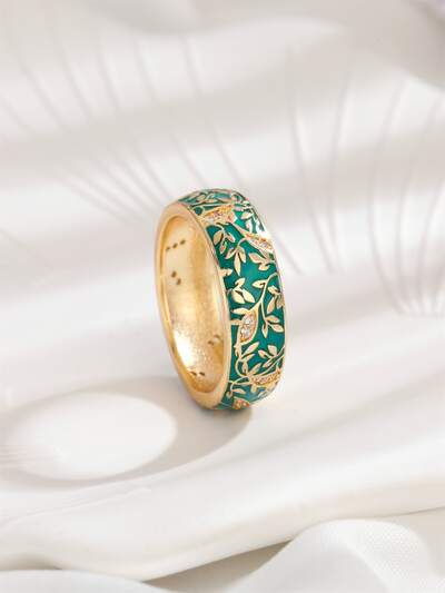 1pc Cubic Zirconia & Leaf Decor Ring Copper Jewelry