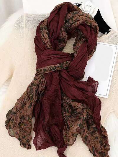 1pc Soft Floral Print Scarf With Creases For Both Warmth And Fashion, Daily Life Essential Boho Winter Fall-21%