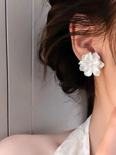1pair Pure White Sweet Flower Design Stud Earrings For Women, Perfect For Parties And Weddings Valentines-15%