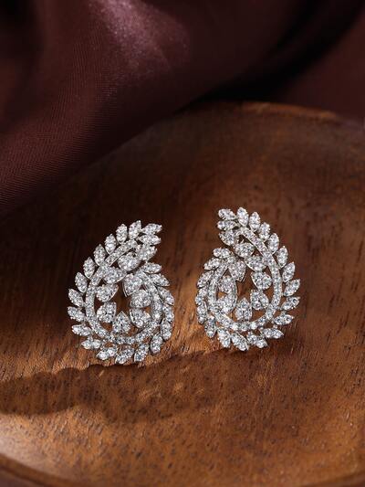 1pair Luxury Cubic Zirconia Leaf Stud Earrings For Women For Party-21%