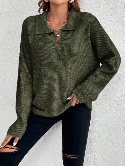 Solid Drop Shoulder Ribbed Knit Sweater Winter Green Casual Christmas-60%