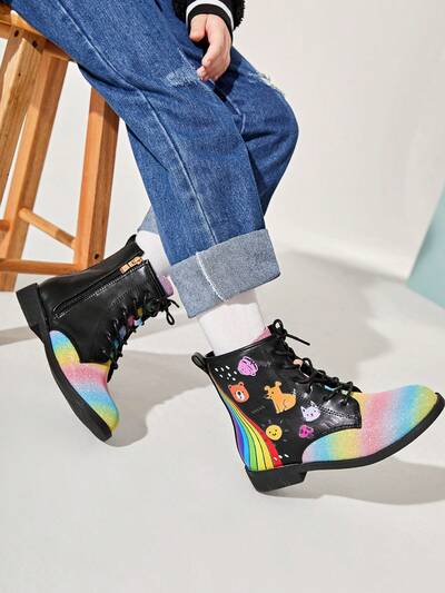 Girls Zipper Side Fashion Combat Boots For Outdoor