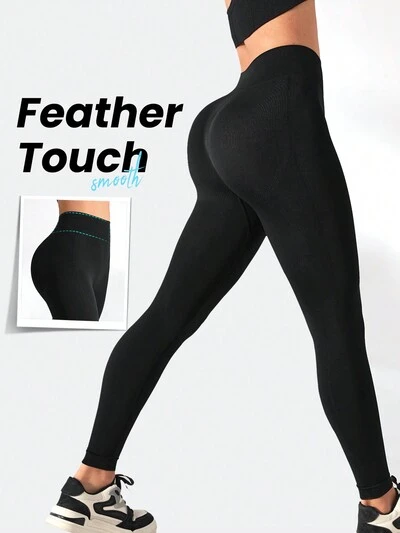 Solide Farbe Breiter Bund Sport Leggings Für Frauen-60%