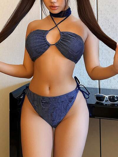 Sommer Bikini Set mit Kreuz-Neckholder, rückenfreier Silhouette, Knoten und Seitenträgern-33%