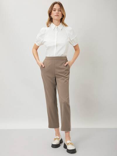Hose mit Band auf Taille, Streifen und weitem Bein-60%