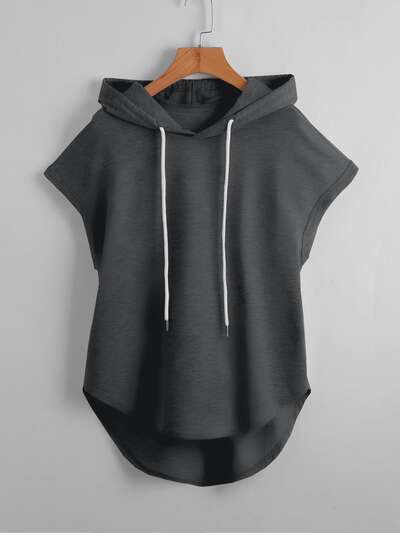 T-Shirt mit Stufensaum, Tunnelzug, Kapuze-65%