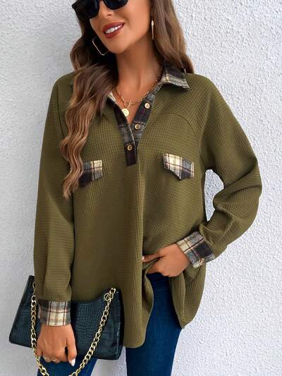 Bluse aus Waffelstrick mit Karomuster und Polokragen-29%