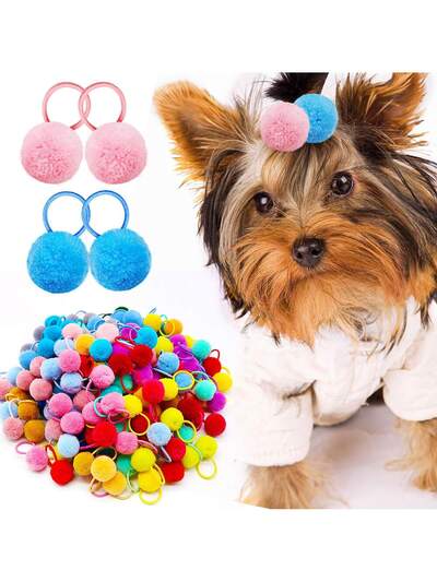 20/40 Stücke sortierte Farben süße Haarbänder mit Fellbällen für Haustiere, klassischer kleiner Kugelstil Haustierzubehör