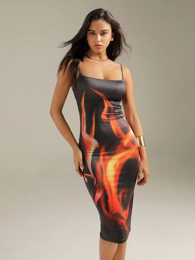 Schwarzes Strickkleid Mit Spaghettiträgern Und Digitalem Druck-60%