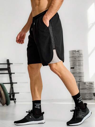 Pantalones cortos deportivos de 2 en 1 para hombres con diseño de bolsillo y franja lateral, pantalones de chándal