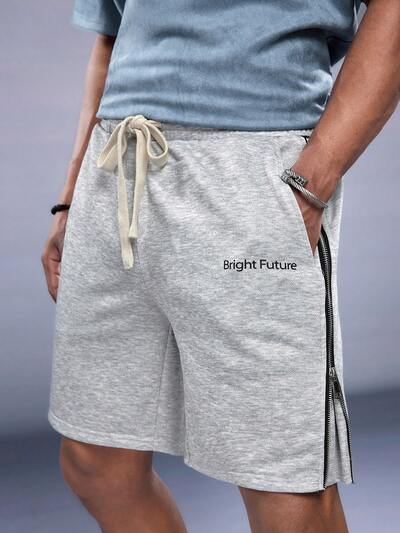 Shorts Rectos Casuales De Punto Para Hombres Con Cierre De Cremallera Simple Y Estilo De Verano-26%