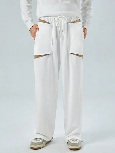 Hombres Pantalones con diseño de parche ribete en contraste de cintura con cordón-60%